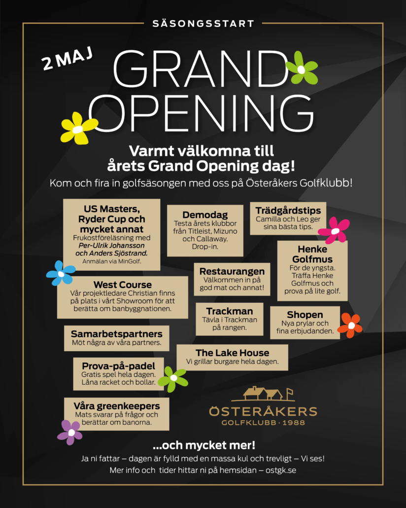 Nu har vi glädjen att meddela att vi har satt datum för säsongsstarten. Vi ser fram emot att välkomna dig tillbaka till en ny golfsäsong på Österåkers GK.