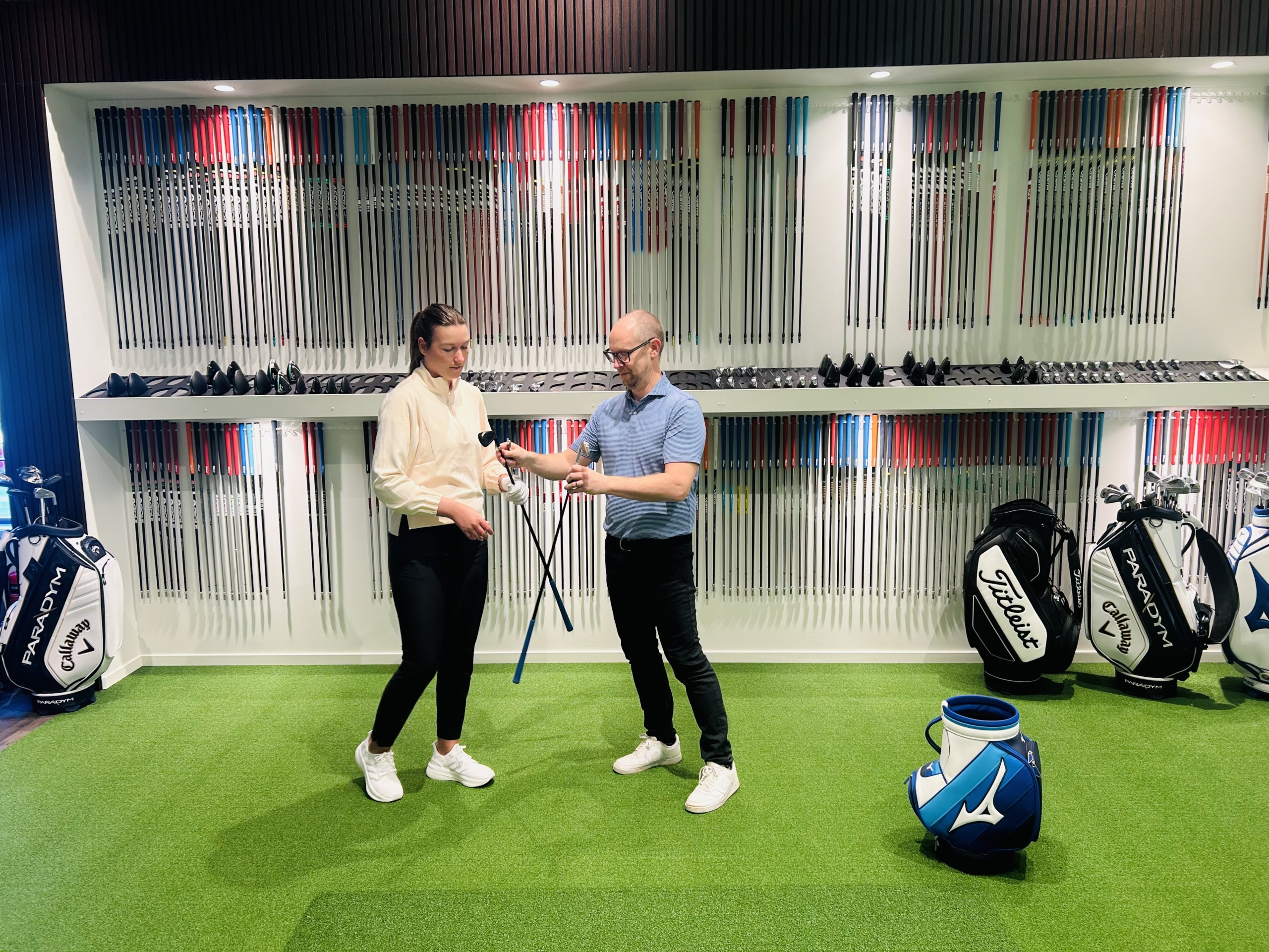 Slutklämmen blir att välja grepptyp och tjocklek. I vår studiomiljö kombinerar vi exakta mätvärden via TrackMan 4 och Titleist Pro V1 RCT bollar i en kombination med att spelaren självklart också får se den viktiga visuella bollflykten.